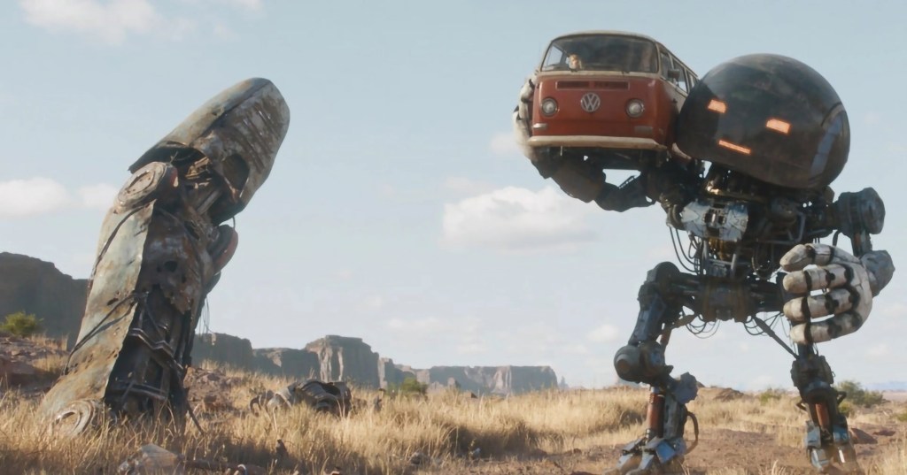Pero no todo es negativo en la producción de los hermanos Russo. Al César lo que es del César, el apartado visual del largometraje es sin lugar a dudas su gran punto fuerte. Y si bien no soy gran fan del propio diseño de los personajes entiendo que estos corresponden a la novela gráfica original y reconozco que el CGI empleado es brillante, con una atención al detalle y escenarios muy bien construidos que pueden llegar a sumergirte en la realidad retro futurista que propone la película. Si tengo que quedarme con algo de “Estado Eléctrico” es indudablemente con este elemento en particular, pero la realidad es la que es, y es qué de una película de 320 millones dólares se espera mucho más y no qué te deje con ese amargo sabor de boca de un dineral muy mal gastado.